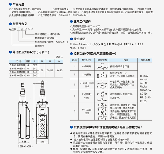 COBC防尘防雨型按钮控制开关系列